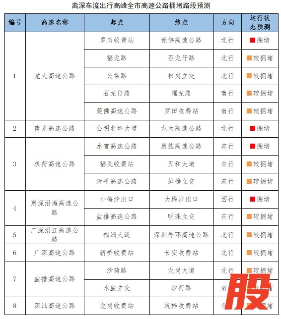 离深高峰期益配资,龙大高速(罗田收费站-莞佛高速公路)北行,南光高速(公明北环大道-龙大高速)北行,机荷高速(水官高速-龙大高速)东行、惠深沿海高速(小梅沙出口-大梅沙出口)西行等路段将出现拥堵。