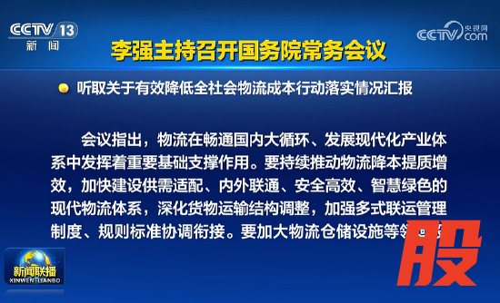 李强主持召开国务院常务会议,听取关于有效降低全社会物流成本行动落实情况汇报。(央视新闻)