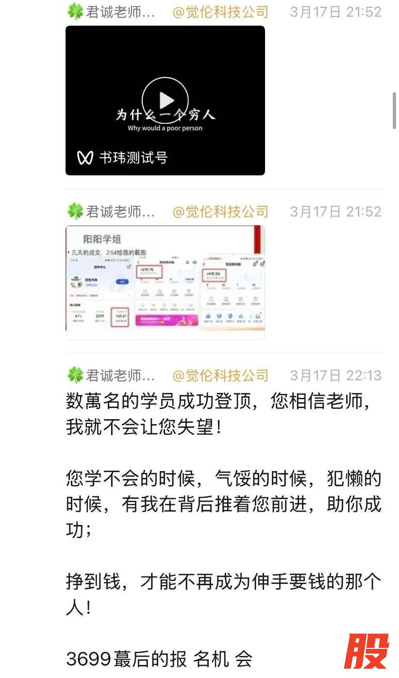 或许是预料到不会得到女儿支持,母亲避开李璐,悄悄刷了信用卡,才缴上这笔AI培训费。十多天课程结束后,机构又要求续缴3299元。母亲犹豫了。此后,她的手机里几乎每天都会收到机构老师发来的消息:“AI是必须抓住的大风口。我们不仅要跟上时代的发展,也要做到越活越年轻……为儿女赚钱更是我们的目标。”
