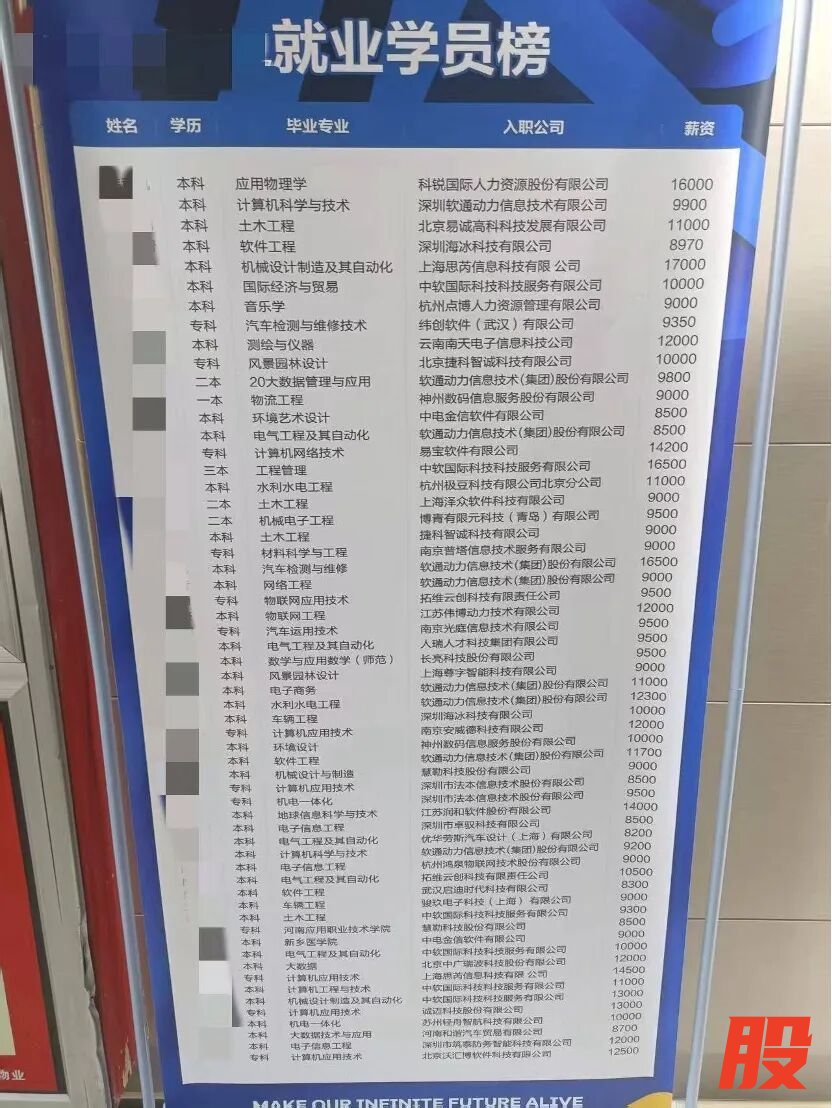 ●培训机构摆放的就业学员榜。讲述者提供